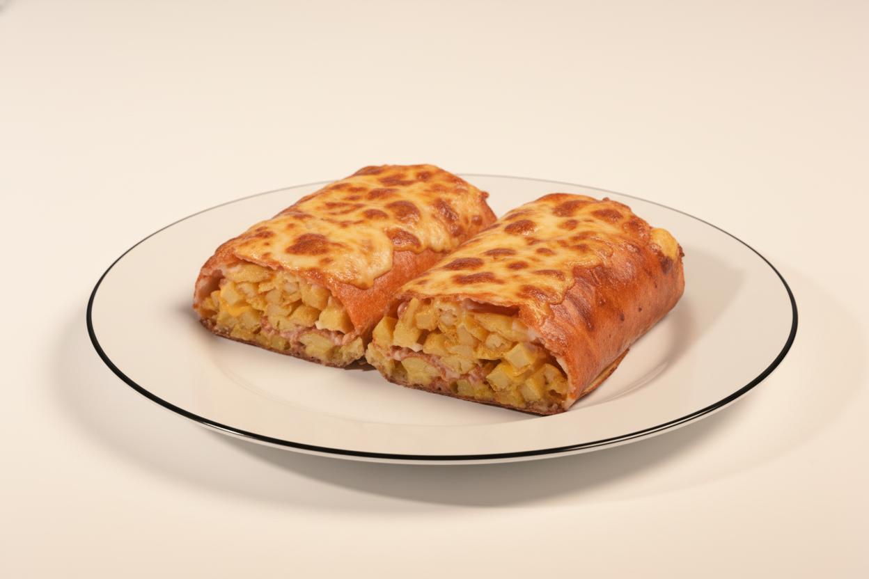 سیب زمینی، پنیر چدار، ژامبون مخلوط 80%، قارچ، 4 نوع پنیر مخلوط